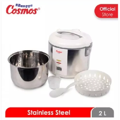 Rice Cooker Cosmos dengan innerpan Stainless Steel yang sehat, tahan gores dan mudah dibersihkan. Bebas PFOA (zat karsinogen yang dapat memicu kanker), berkapasitas 2.0 Liter.