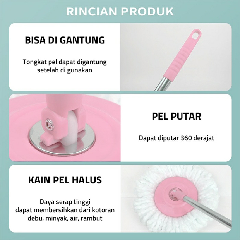 Kain pel dengan serat fiber (daya serap kuat sehingga lantai mudah dibersihkan dan merawat permukaan lantai).