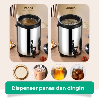 Bahan stainless steel dan plastik. Dilengkapi kaki yang dapat di panjang pendekkan. Dapat tahan hingga suhu 150 celcius. Tuas kran air yang mudah digunakan. Mampu menjaga suhu minuman lebih lama. Tahan panas dan dingin. Body kuat, tebal dan awet. Mudah digunakan dan dibersihkan. Cocok untuk acara besar keluarga ataupun jualan minuman