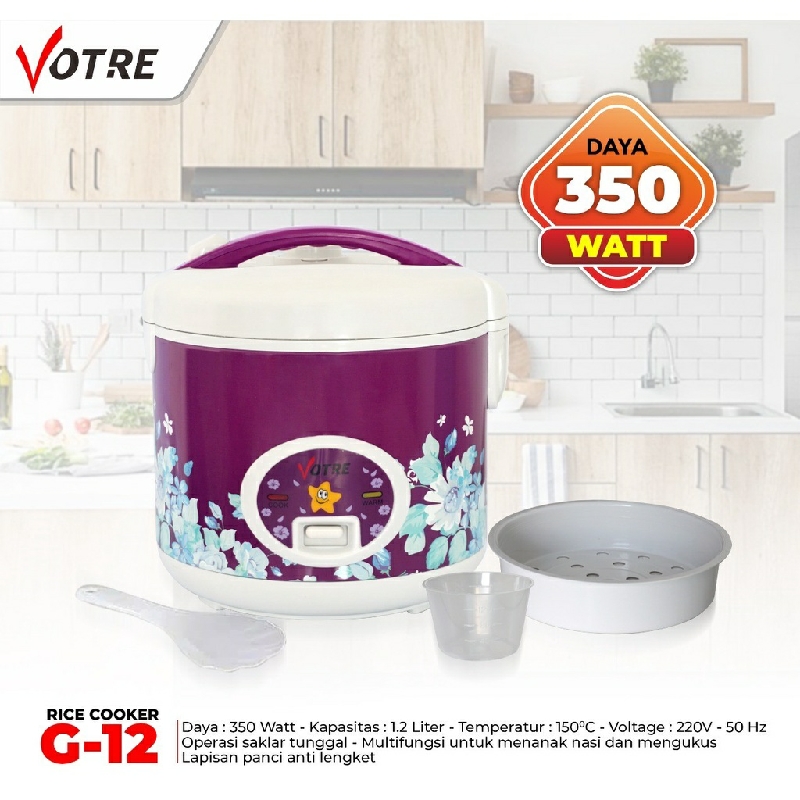 Khawatir apabila perangkat dapur Anda akan mengunakan daya listrik yang besar? Rice Cooker Votre G10 hanya memerlukan daya listrik hanya sebesar 350W untuk memasak nasi. Kapasitas memasaknya mampu menampung hingga 1.2 L. Kapasitas besar ini membuat Anda dapat memasak untuk seluruh keluarga tanpa kekurangan dan kesulitan.