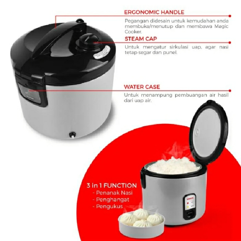 - Function : Rice cooker, Warmer, Steamer