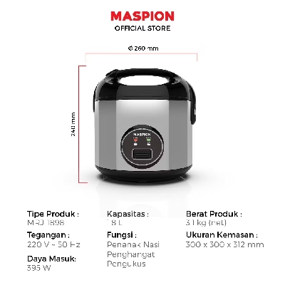Body menggunakan plate stainlesd steel menjadikan penanak nasi lebih mewah dan mudah di nersihkan