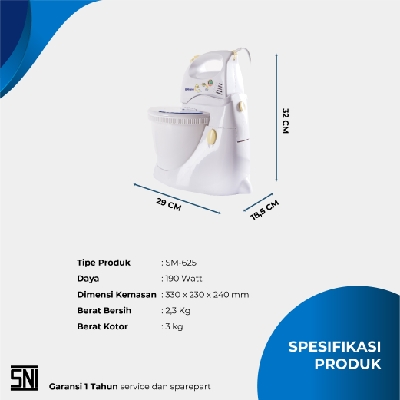 Stand Mixer Miyako SM-615 Rp245.000 SpesifikasiWatt 190 WSpeed 5 PulseKelengkapan Stand Mixer Bowl MerekMiyako KondisiBaru Berat3000gr Garansi12 Bulan Tanggal Posting2022-05-31 13:08:36 Jumlah Produk - + Tambah ke keranjang Pesan di Whatsapp