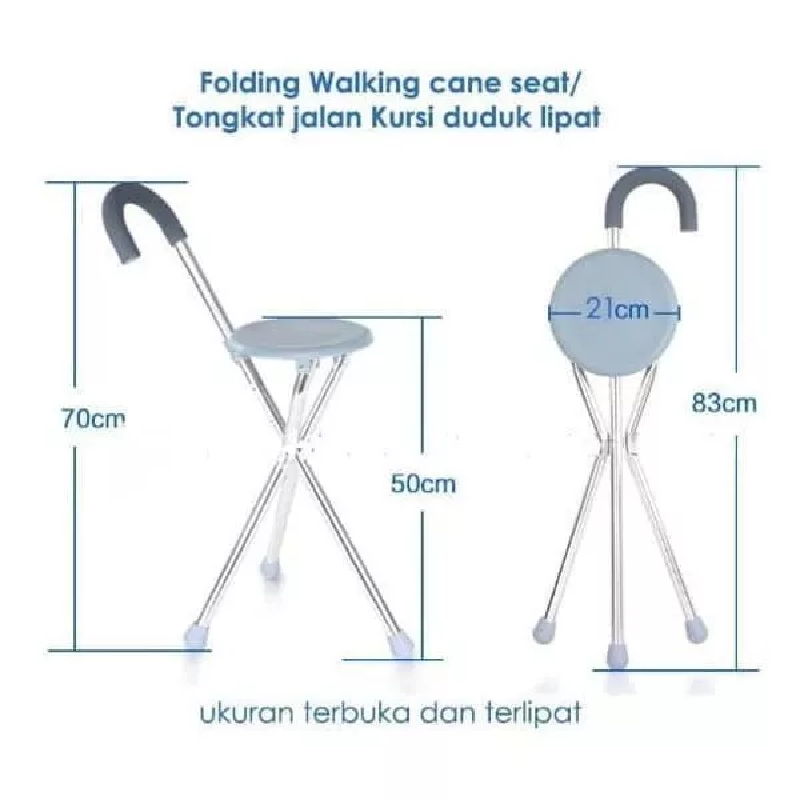 Tongkat Kursi utk pengguna bisa duduk di tongkat kursinya ketika kecapekan berjalan, jadi bisa dipakai untuk mereka yang sehat namun mau bepergian atau berlibur