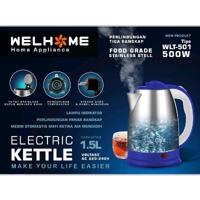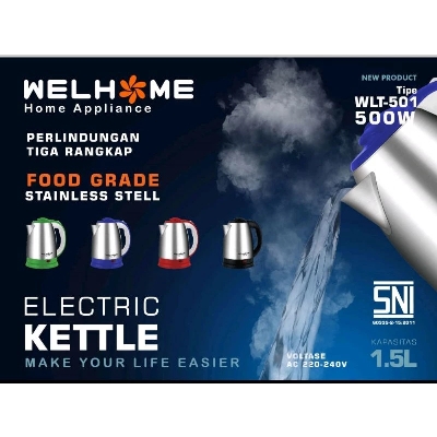 - Sistem proteksi ganda, otomatis mati jika air sudah mendidih atau tanpa air